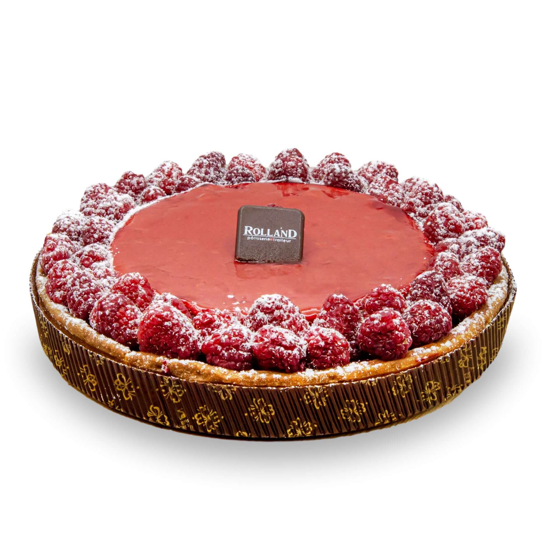 Pâte sucrée, crème d’amande, crémeux aux framboises, framboises.