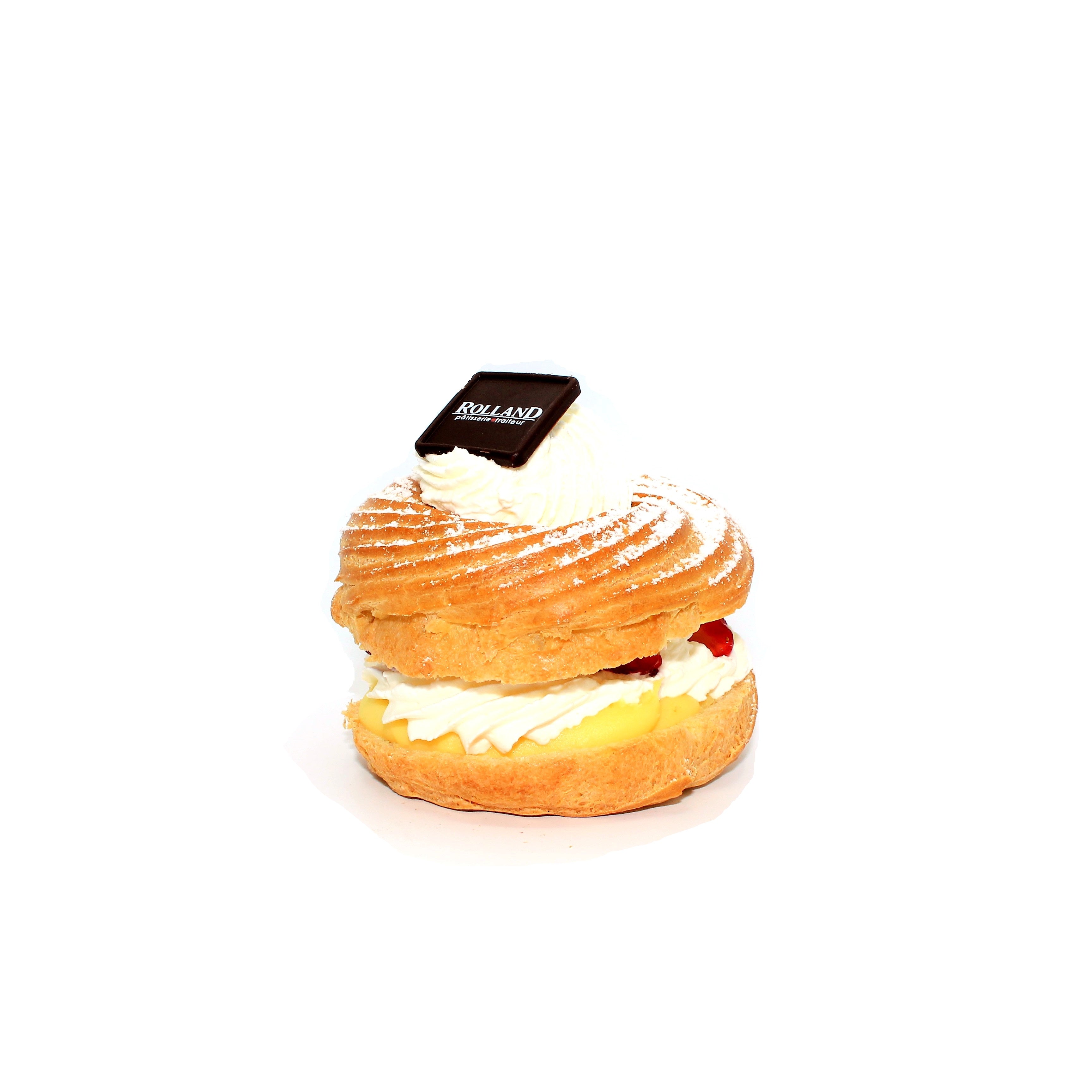 Pâte à choux, crème pâtissière, crème chantilly, fraises fraîches.