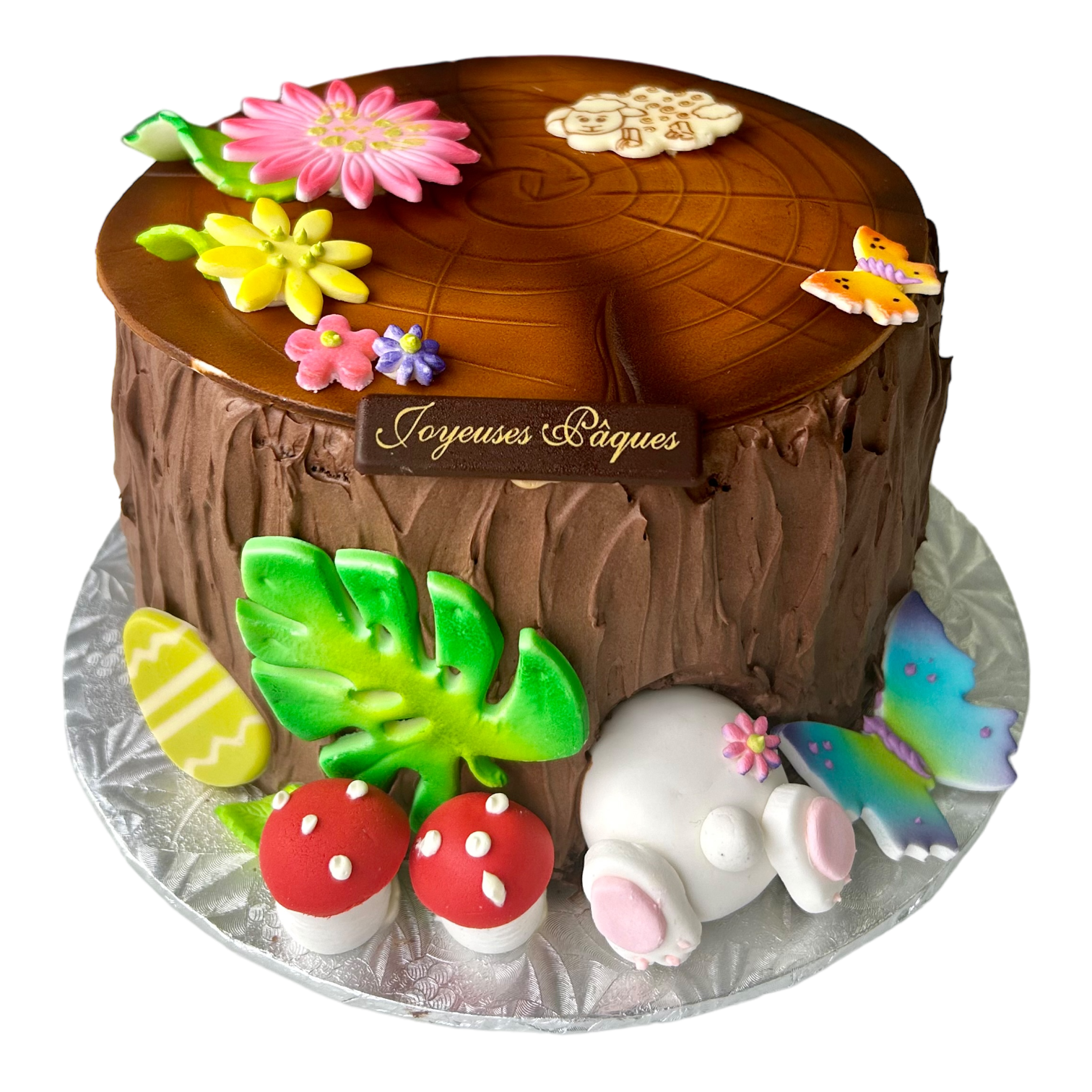 Pâte moelleuse au chocolat, Crème au beurre chocolat, Ganache chocolat, Décoré de pâte